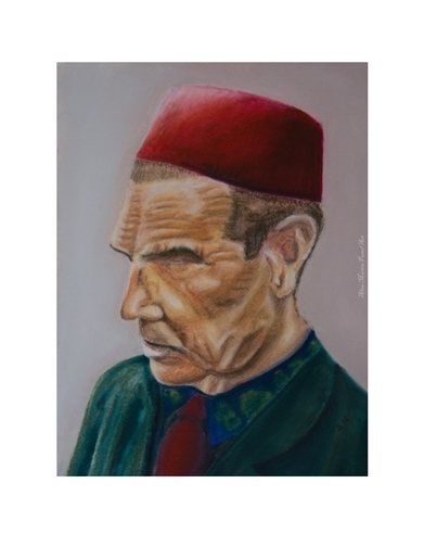1950s Kazakh Chess Virtuouso. Drawn from black and white photo.